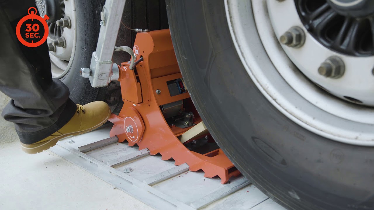POWER CHOCK® 7 is a new generation wheel restraint system with a locking mechanism that locks the chock onto the ground plate for an additional protection.